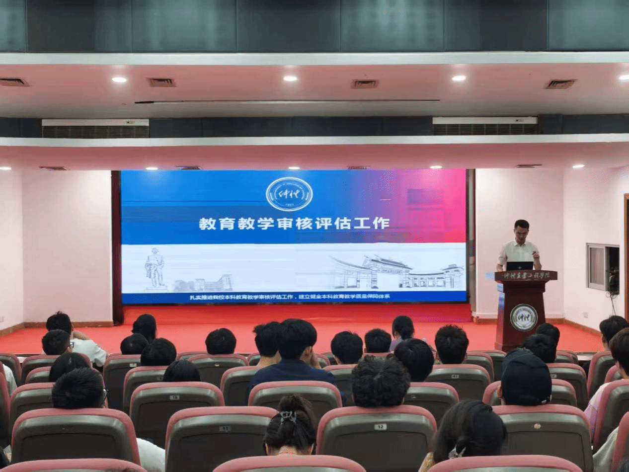 随后,黎耀元围绕教育教学审核评估的核心要义、校史校情及学生迎评准备三个方面展开阐述。他强调,本次评估是对学校教学质量的一次全面检验,事关专业建设、课程优化与人才培养目标的实现,更是推动教学工作迈向规范化、高质量的重要抓手。