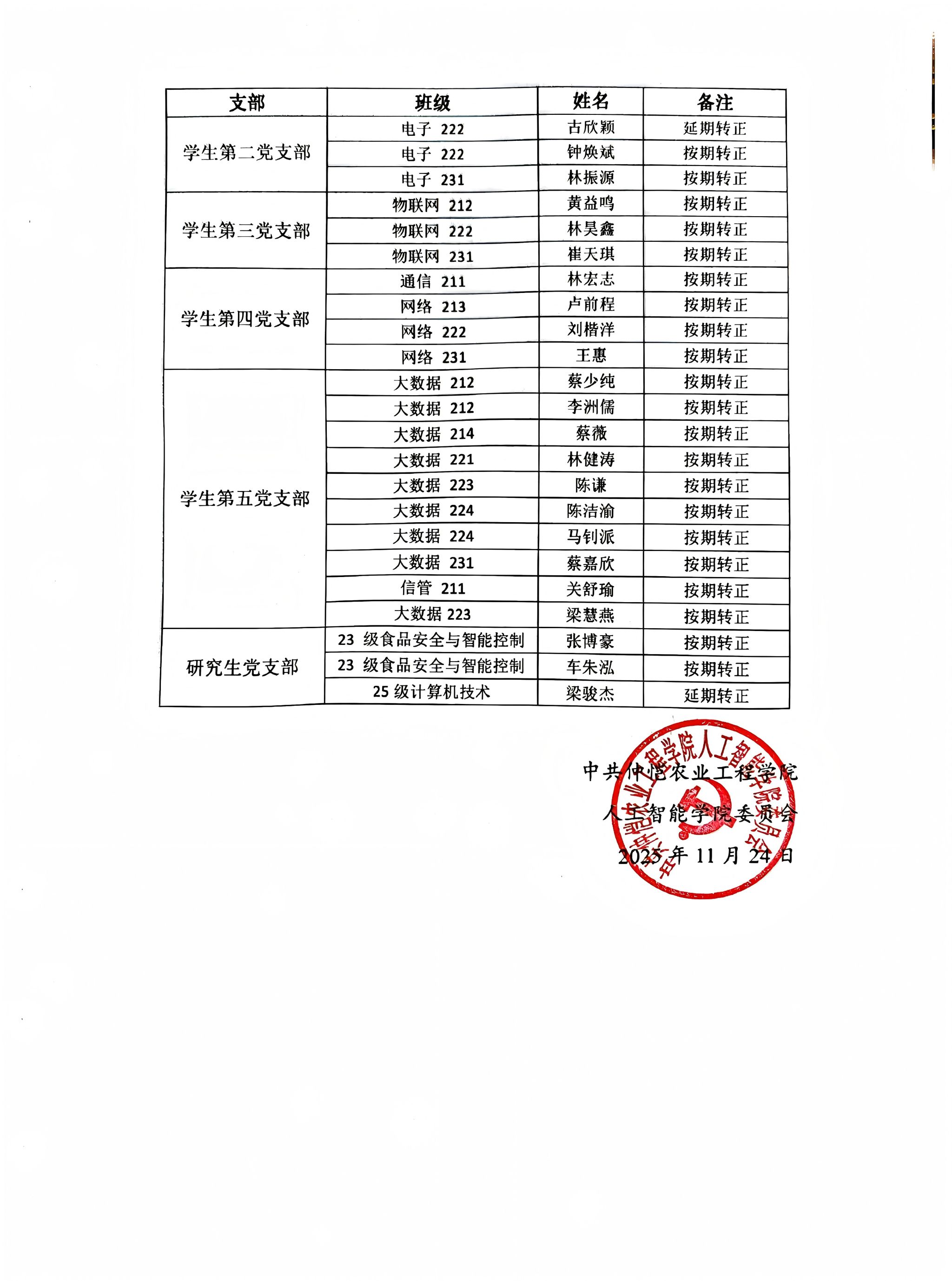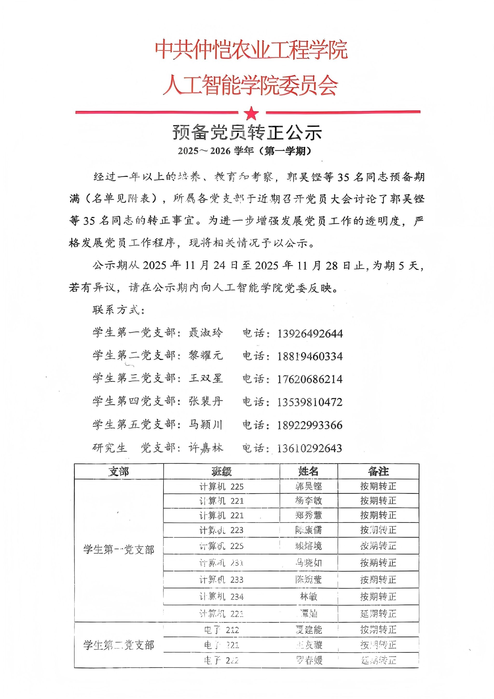 2025-2026学年(第一学期)预备党员转正名单公示