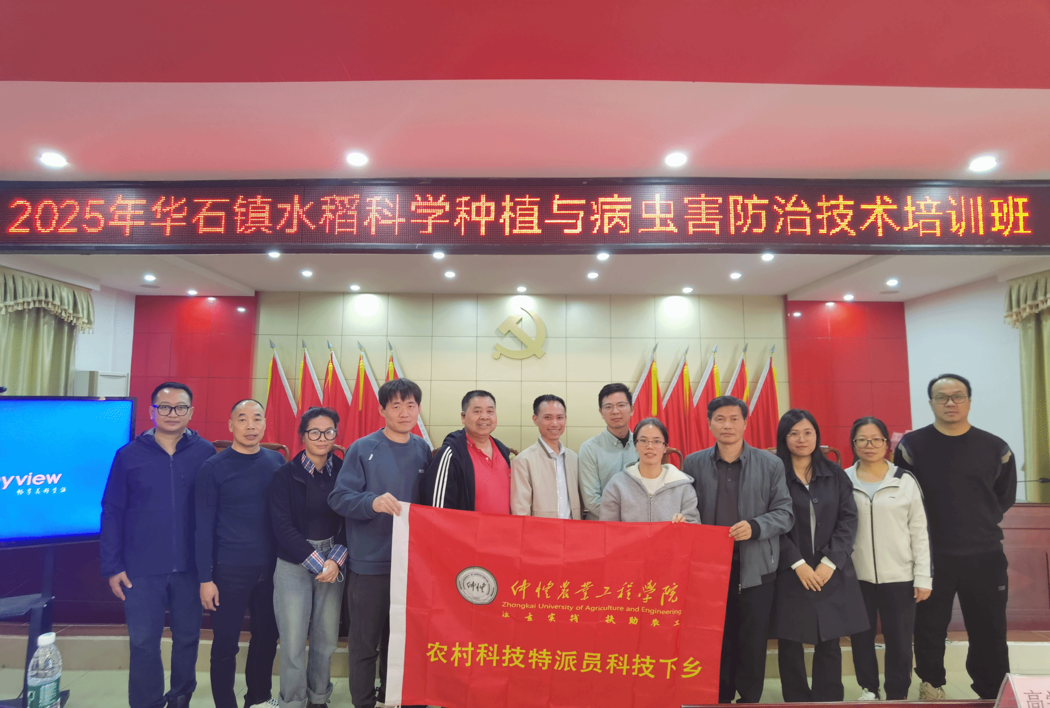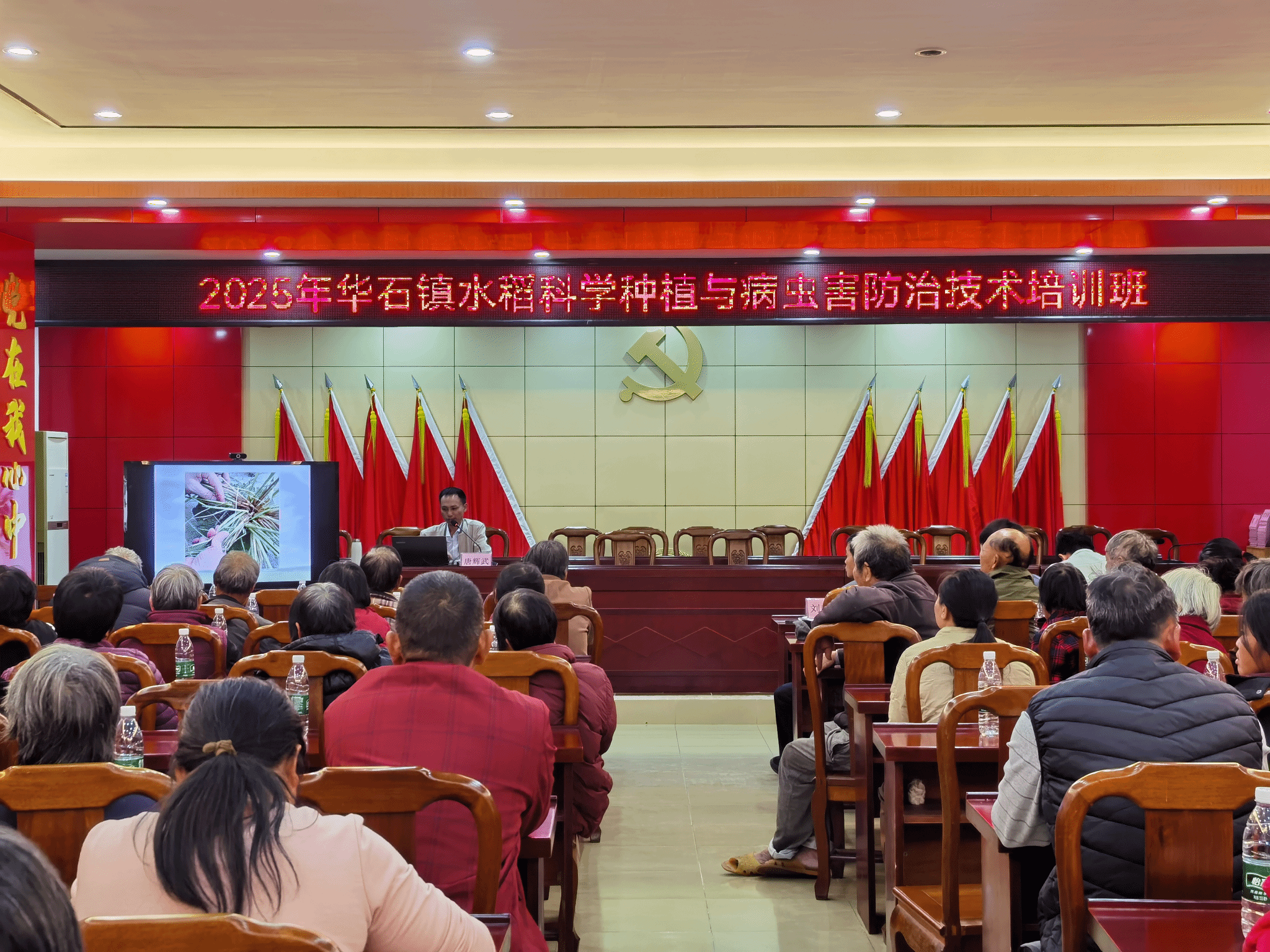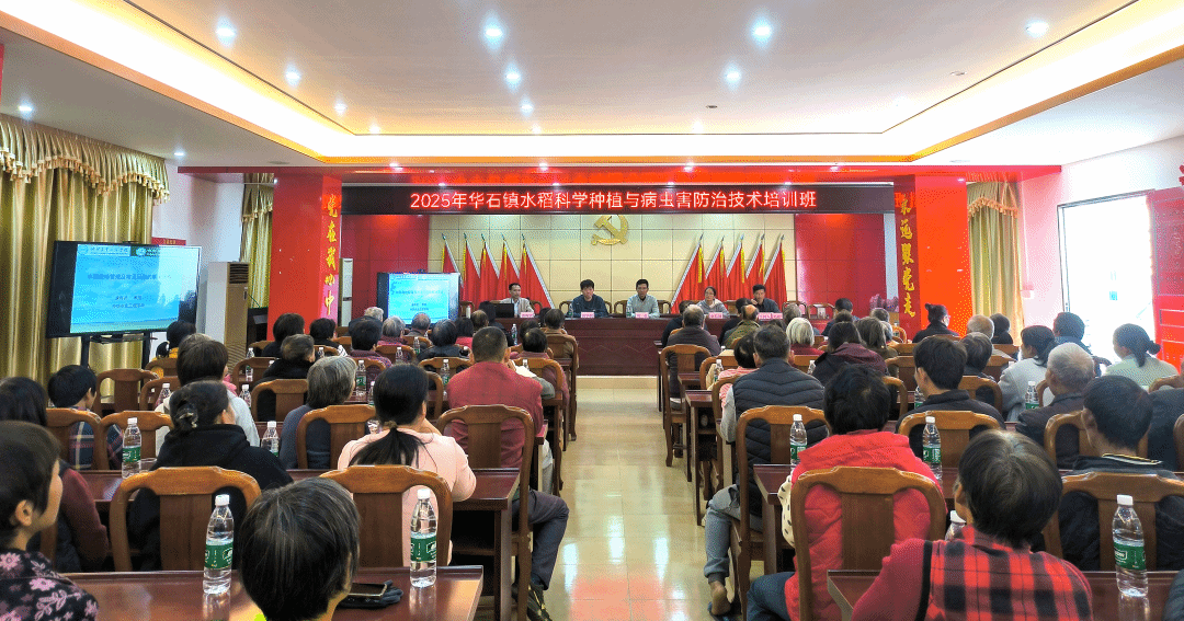 近日,华石镇部分稻田因病虫害影响出现减产,对农户收入造成实际损失。获悉该情况后,驻镇帮镇扶村工作队与仲恺农业工程学院农村科技特派员团队高度重视,迅速协调资源,由特派员团队高学凯老师特邀水稻专家唐辉武教授进行专题培训。2025年11月27日下午,双方联合举办的“2025年华石镇水稻科学种植与病虫害防治技术培训班”正式开班,谢彩健、刘岳等老师共同参与,吸引了全镇80余户水稻种植户踊跃参加。